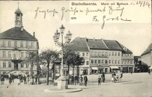 Ak Bischofswerda in Sachsen, Marktplatz mit Rathaus