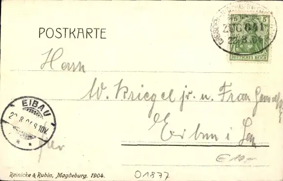 Zustand siehe Scan, gelaufen, 1904 - ca 14 cm X 9 cm