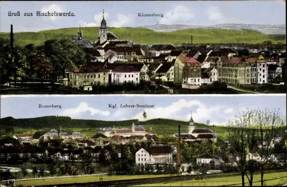 Ak Bischofswerda in Sachsen, Panorama, Klosterberg, Butterberg, Lehrerseminar