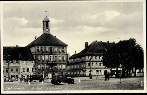 Ak Bischofswerda in Sachsen, Rathaus, Marktplatz