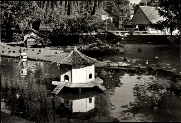 Ak Bischofswerda in Sachsen, Tierpark, Teich