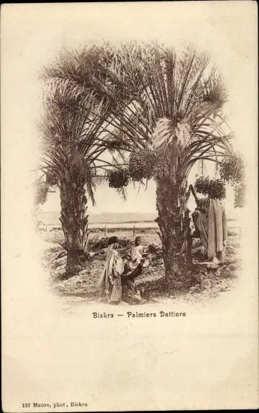 Ak Biskra Algerien, Dattelpalmen, Kinder