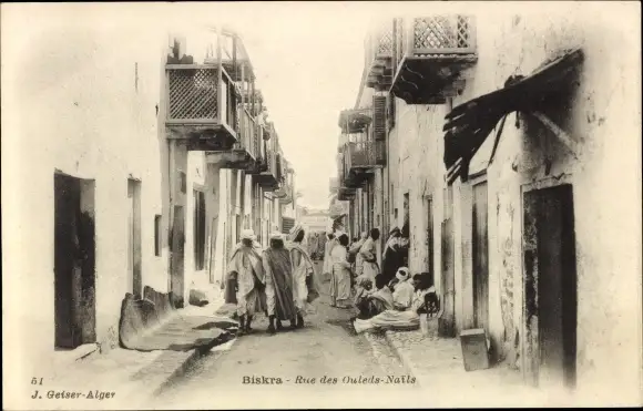 Ak Biskra Algerien, Rue des Ouleds Nails