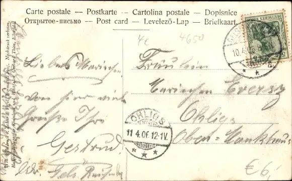 Zustand, siehe Scan, gelaufen, 1906 - ca 14 cm X 9 cm