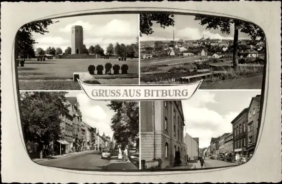 Ak Bitburg Rheinland, Straßenpartien, Turm, Ort