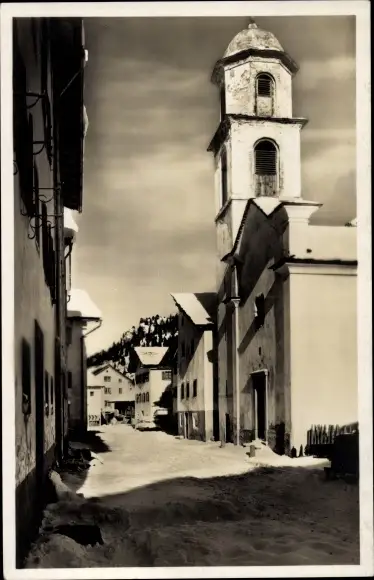 Ak Bivio Kanton Graubünden, Straßenpartie, Kirche