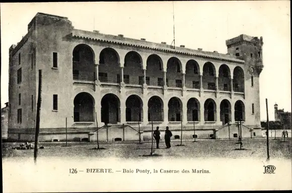 Ak Bizerte Tunesien, Baie Ponty, la Caserne des Marins