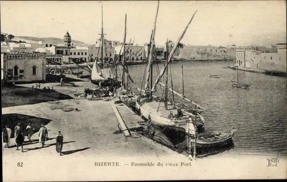 Ak Bizerte Tunesien, Ensemble du vieux Port, Hafen, Boote