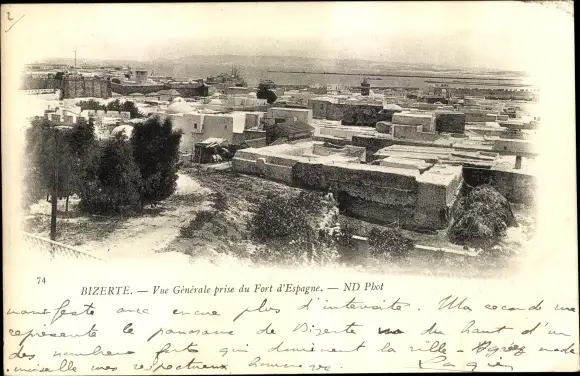 Ak Bizerte Tunesien, Vue Generale prise du Fort d'Espagne