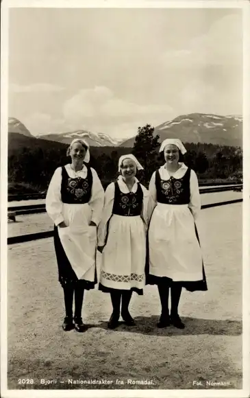Ak Bjorli Norwegen, Nationaldrakter fra Romsdal, Junge Frauen in Tracht