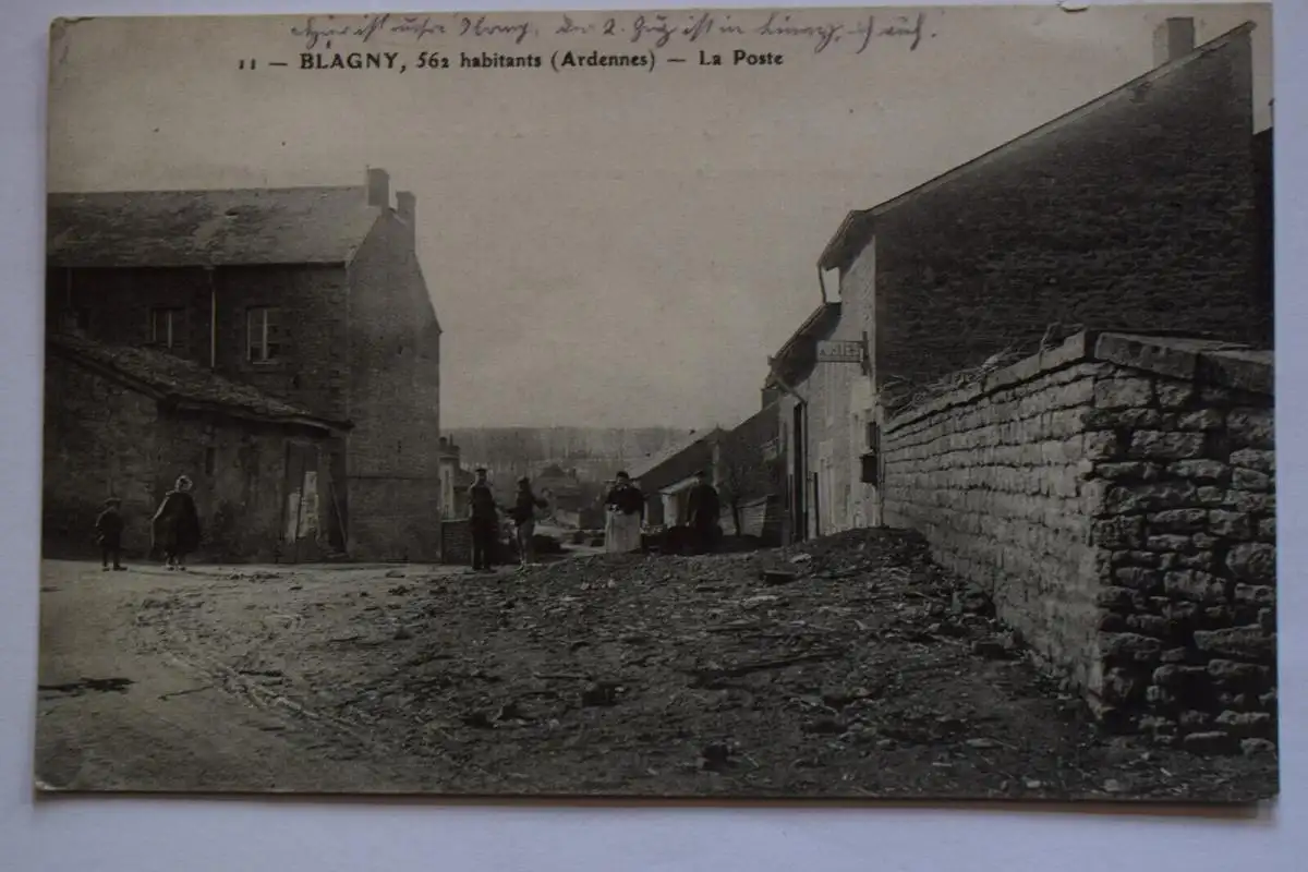 Ak Blagny, 562 habitants (Ardennes), La Poste um 1914 gelaufen - Feldpost