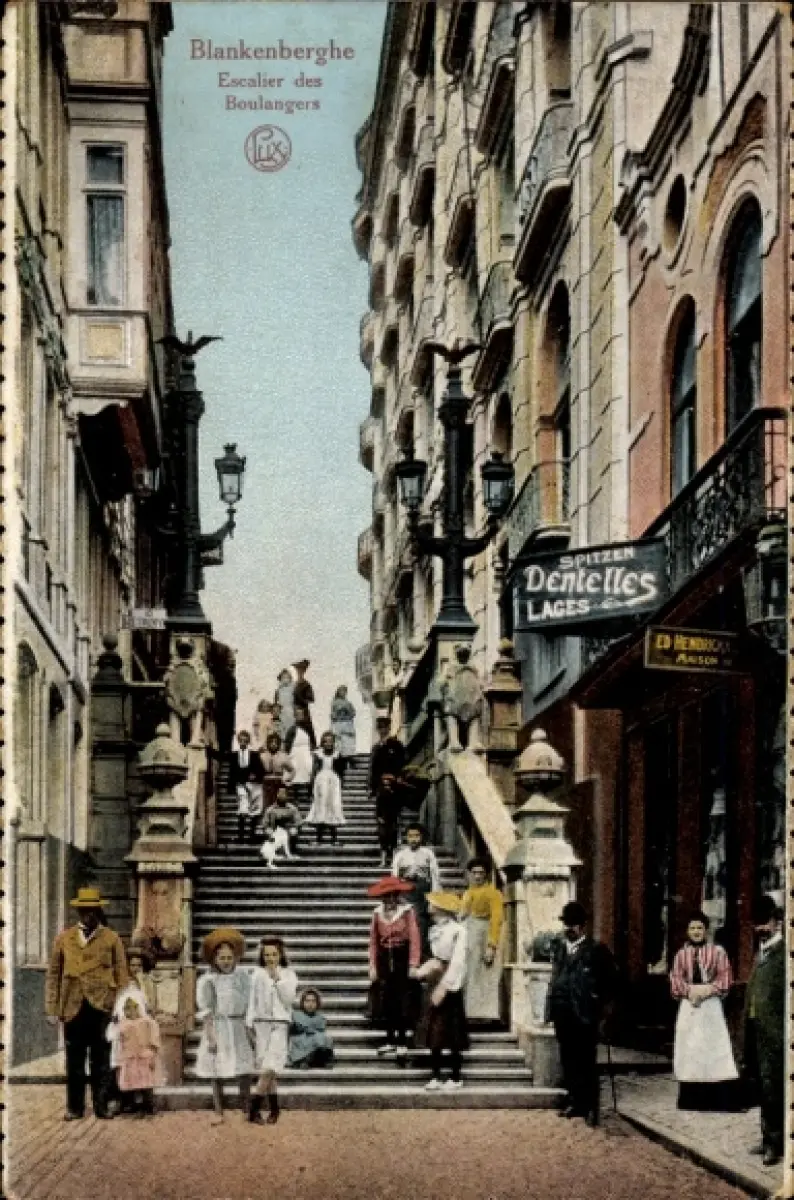 Ak Blankenberghe Blankenberge Westflandern, Blankenberghe, Treppe, Menschen, Kleidung, farbig