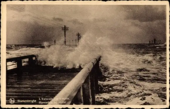 Ak Blankenberghe Blankenberge Westflandern, L'Estacade par tempete