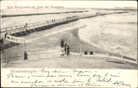 Ak Blankenberghe Blankenberge Westflandern, Les Estacades an einem stürmischen Tag