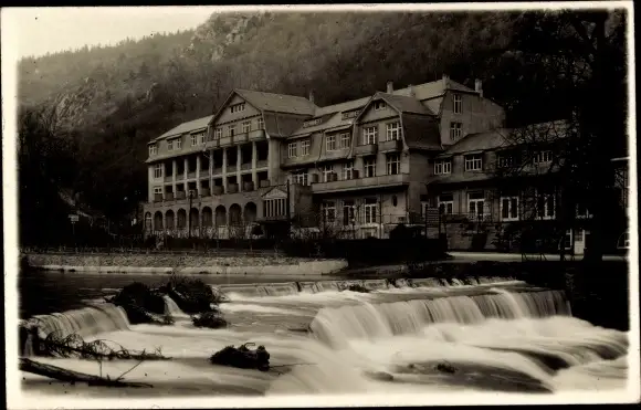 Ak Blankenburg, Chrysopraswasserfall mit Haus, Schwarzatal