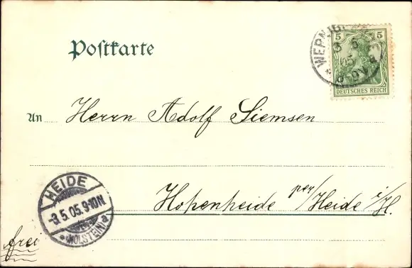 Zustand, siehe Scan, gelaufen, 1905 - ca 14 cm X 9 cm
