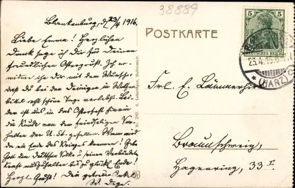 Zustand, siehe Scan, gelaufen, 1916 - ca 14 cm X 9 cm