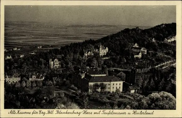 Ak Blankenburg am Harz, alte Kaserne f. Erz. Batl. mit Teufelsmauer u. Hinterland