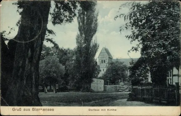 Ak Blankensee Trebbin, Dorfaue mit Blick auf die Kirche