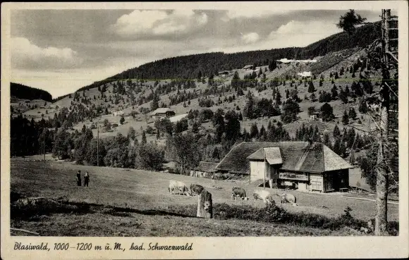 Ak Blasiwald im Schwarzwald, Panorama, Weide, Kühe