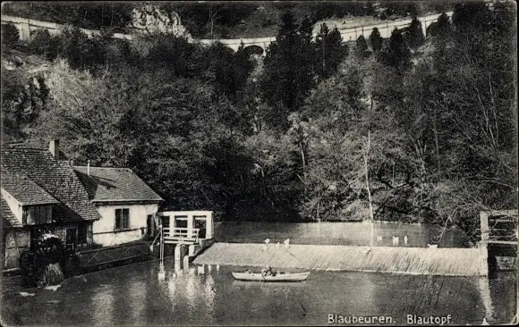 Ak Blaubeuren in Württemberg, Blautopf, Mühle, Boot