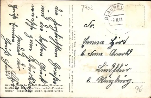 Zustand, siehe Scan, gelaufen, 1941 - ca 14 cm X 9 cm