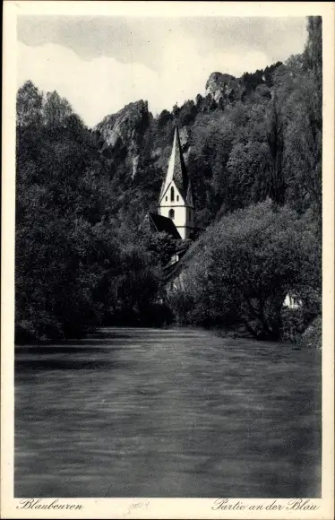 Ak Blaubeuren in Württemberg, Partie an der Blau, Kirche