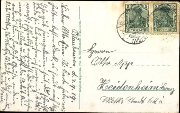 Zustand, siehe Scan, gelaufen, 1919 - ca 9 cm X 14 cm
