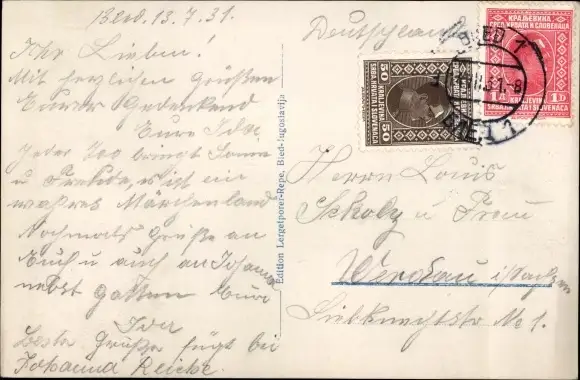 Zustand, siehe Scan, gelaufen, 1931 - ca 14 cm X 9 cm