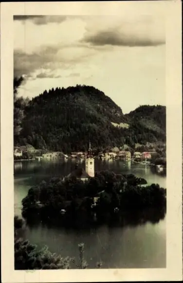 Ak Bled Veldes Slowenien, Teilansicht, Insel, Kirche