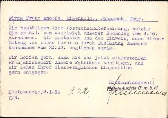 Ak Bleicherode am Harz, Holzindustrie GmbH, Reklame