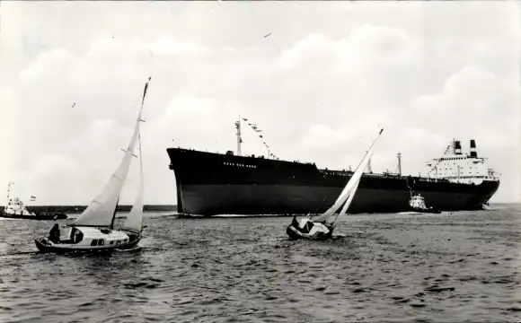 Ak Blick auf den Tanker Esso den Haag, Segelboote