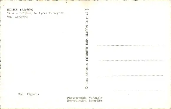Ak Blida Algerien, Gesamtansicht, Kirche, Lycee Duveyrier, Luftbild
