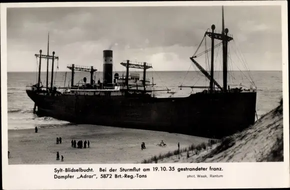 Ak Blidselbucht Sylt, Gestrandeter Dampfer Adrar, 19 10 1935, Chargeurs Réunis