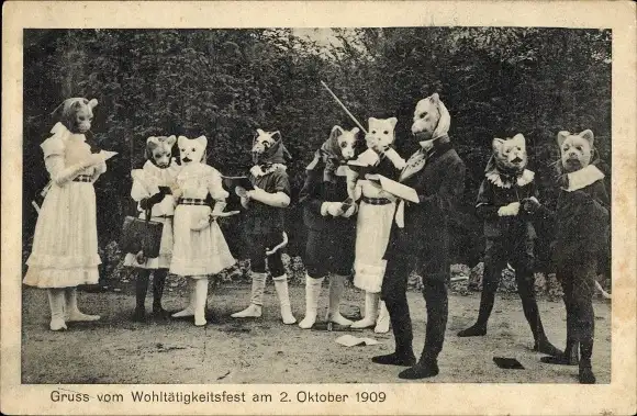 Ak Blomberg in Lippe, Wohltätigkeitsfest am 2. 10. 1909, maskierte Menschen