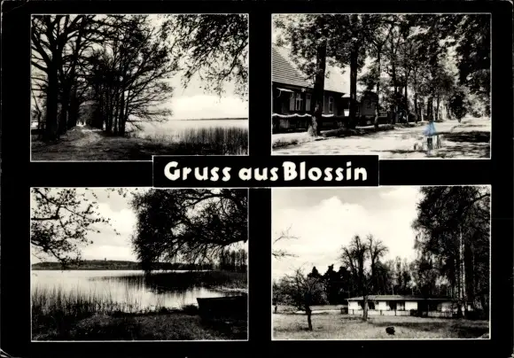 Ak Blossin in der Mark, Teilansichten, Seeufer, Straßenpartie