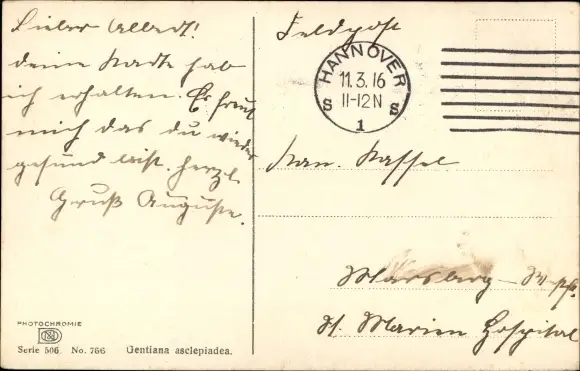 Zustand, siehe Scan, gelaufen, 1916- Nenke 506 766 - ca 14 cm X 9 cm