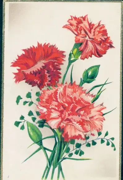 Ak Blühende rote Blumen, Knospen, Pflanzen