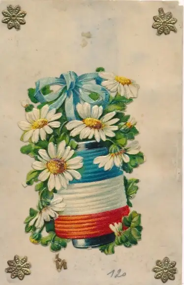 Ak Blumenstrauß, Blaue Schleife, Margeriten