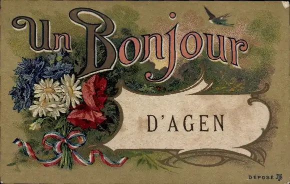 Ak Blumenstrauß, Schleife, Schwalbe, Kitsch
