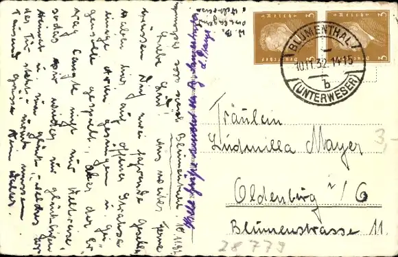 Zustand, siehe Scan, gelaufen, 1932 - ca 14 cm X 9 cm