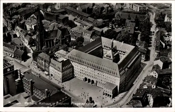 Ak Bochum im Ruhrgebiet, Fliegeraufnahme, Rathaus und Postamt