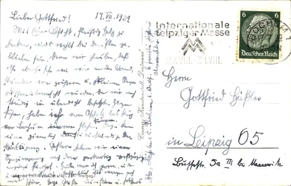 Zustand, siehe Scan, gelaufen, 1939 - ca 14 cm X 9 cm