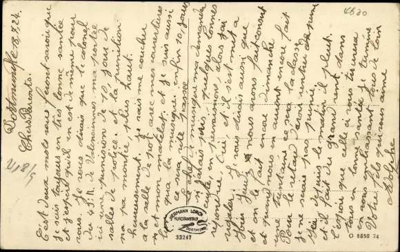 ungelaufen, datiert 1924, Rückseite beschrieben, Eckknick links oben, sonst guter Zustand