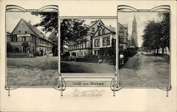 Ak Bockwa Zwickau in Sachsen, Teilansichten, Gasthof, Straßenpartie, Kirche, Gebäue