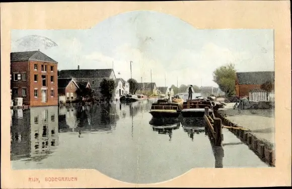 Ak Bodegraven Rijn Südholland, Boote am Rijnufer