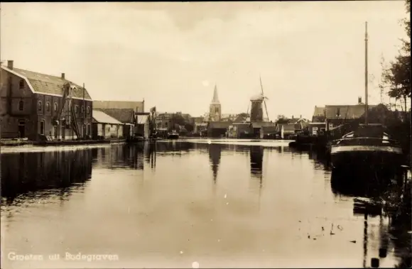 Ak Bodegraven Südholland, Flusspartie, Molen
