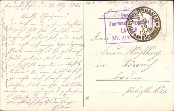 Zustand, siehe Scan, gelaufen, 1916 - ca 14 cm X 9 cm