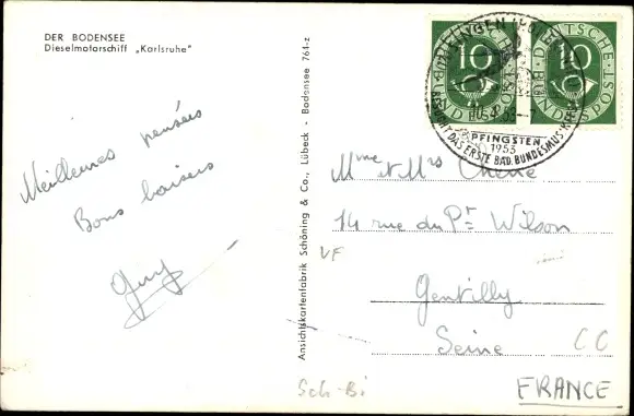 Zustand, siehe Scan, gelaufen, 1953 - ca 14 cm X 9 cm