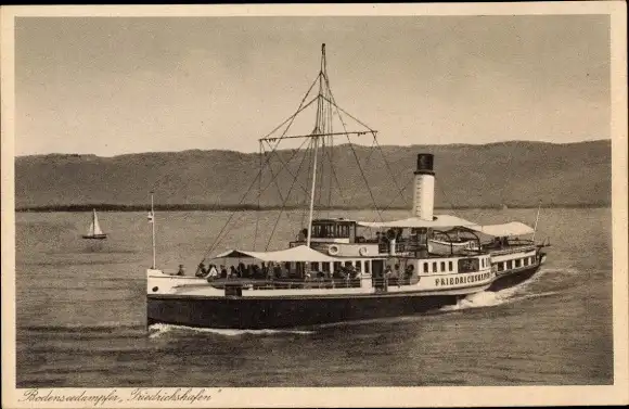 Ak Bodenseedampfer Friedrichshafen, Segelboot